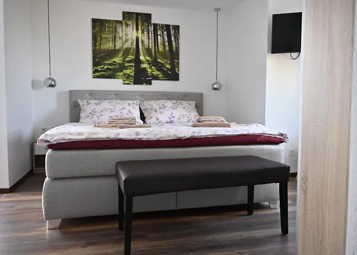 Boendet erbjuder möjligheter för självhushållning, inklusive ett komplett kök, matplats och utomhusmatplats för gästerna. Du kommer att befinna dig i närheten av busshållplatsen Unterm Ratskopf. Du kan njuta av din egen tid på en terrass med utsikt över trädgården.
